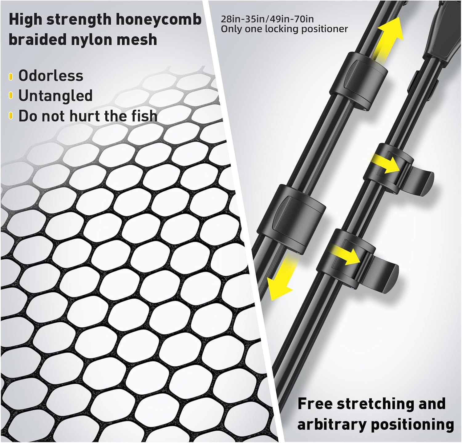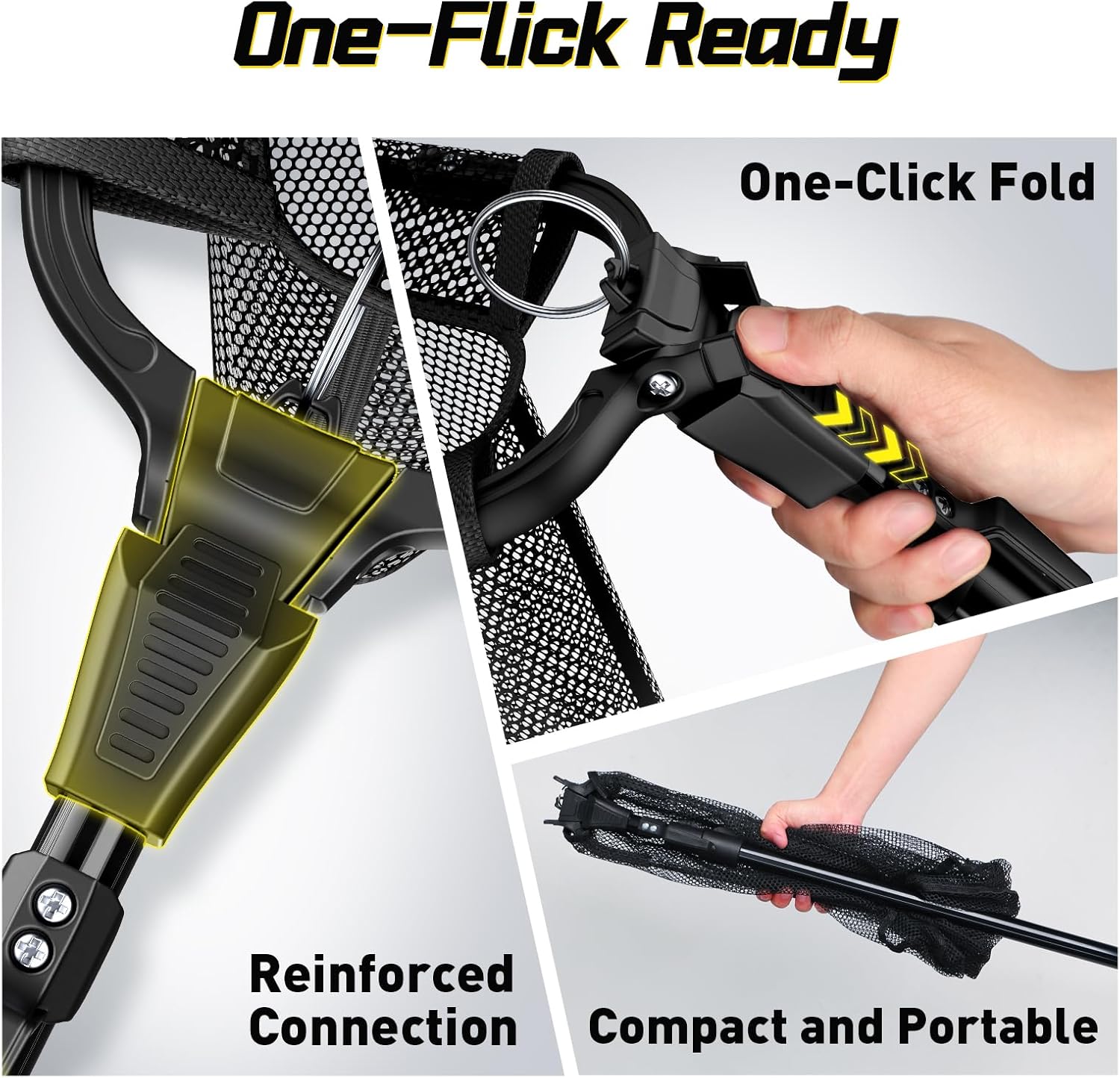 With a telescoping handle that extends for added reach and collapses for convenient storage, this fishing net is both versatile and practical. The innovative one-flick unfold mechanism allows you to set up the net in seconds, so you can focus on what matters most – catching fish!